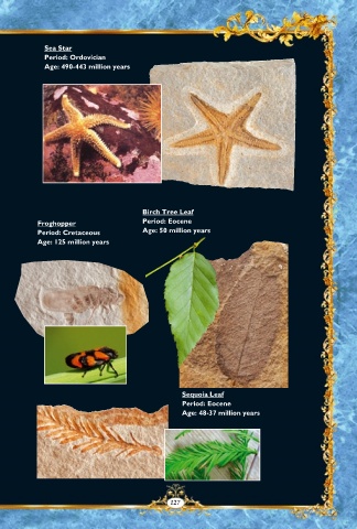 Sea Star Period: Ordovician Age: 490-443 million years Birch Tree Leaf Froghopper Period: Eocene Period: Cretaceous Age: 50 million years Age: 125 million years Sequoia Leaf Period: Eocene Age: 48-37 million years 127
