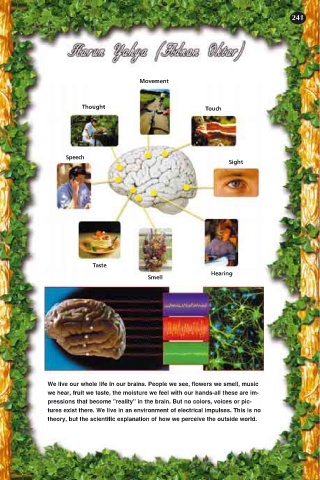 We live our whole life in our brains. Peo ple we see, flow ers we smell, music