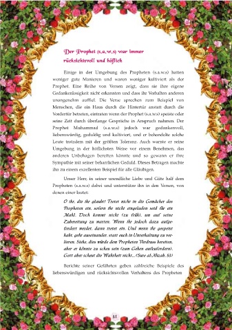 liebenswürdigen und rücksichtsvollen Verhaltens des Propheten