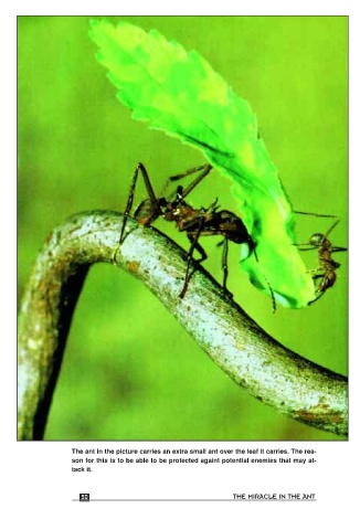 The ant in the picture carries an extra small ant over the leaf it carries. The rea- son for this is to be able to be protected againt potential enemies that may at- tack it. Kar›nca Mucizesi 50 THE MIRACLE IN THE ANT
