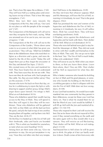eye. That is how We repay the evildoers. (7:40) tion? Hell hems in the disbelievers. (9:49)