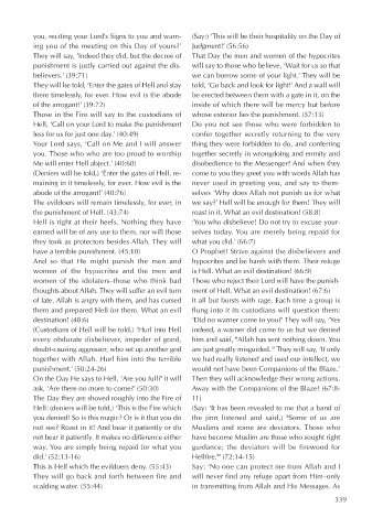 ask, ‘Are there no more to come?’ (50:30) Away with the Companions of the Blaze! (67:8-
