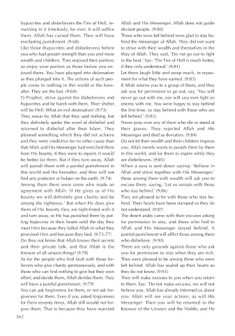 Knower of all unseen things? (9:78) you for permission to stay when they are rich.