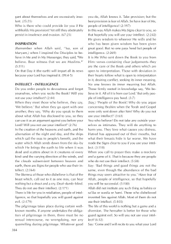 not use your intellect? (2:44) ple of intelligence pay heed. (3:7)