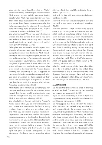 After that no other women are lawful for you nor Do not say that those who are killed in the Way