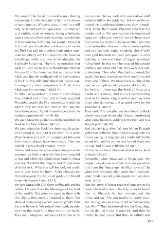 I consign my affair completely to Allah. Truly past, an example for later peoples. (43:46-56)