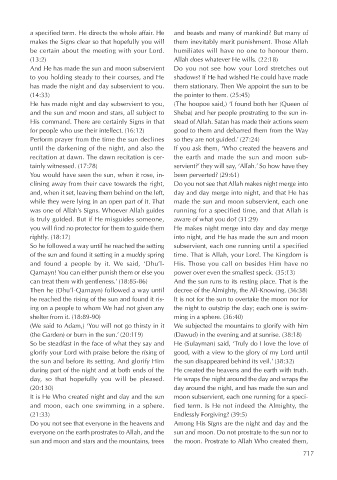 He has made night and day subservient to you, (The hoopoe said,) ‘I found both her (Queen of