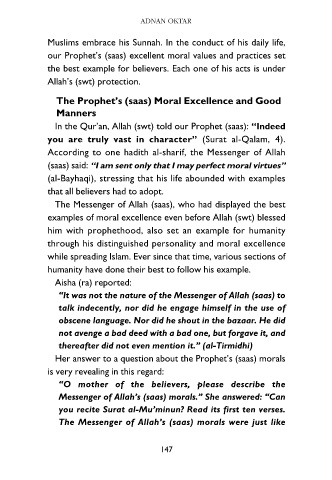 Messenger of Allah’s (saas) morals.” She answered: “Can