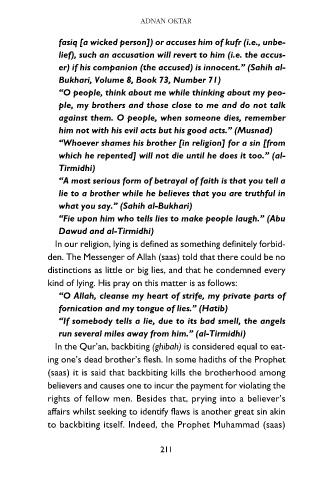 fasiq [a wicked person]) or accuses him of kufr (i.e., unbe-