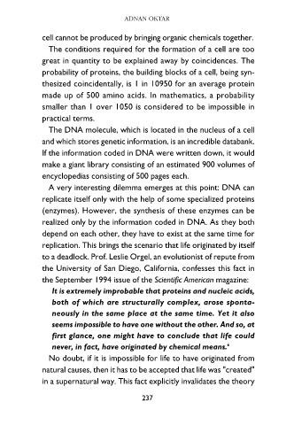 to a deadlock. Prof. Leslie Orgel, an evolutionist of repute from