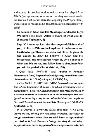 Al-Qadi `Iyad (544/1149) said: “Belief in Prophet