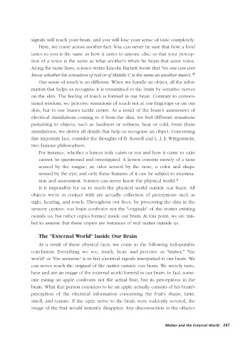 world" or "the universe" is in fact electrical signals interpreted in our brain. We