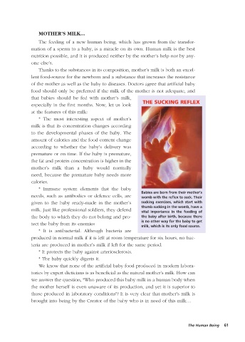 needs, such as antibodies or defence cells, are womb with the reflex to suck. Their