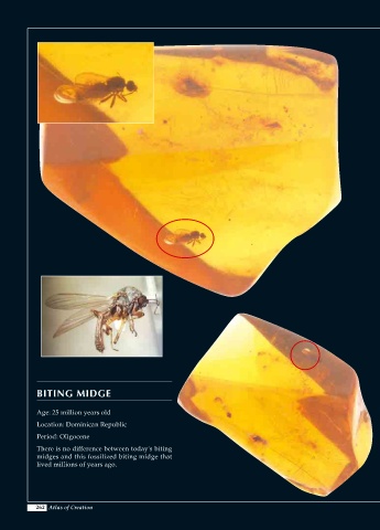 BITING MIDGE Age: 25 million years old Location: Dominican Republic Period: Oligocene There is no difference between today's biting midges and this fossilized biting midge that lived millions of years ago. 262 Atlas of Creation