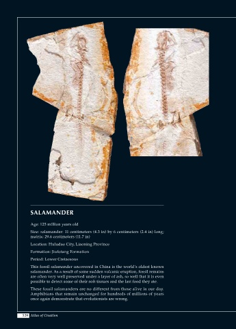 salamander. As a result of some sudden volcanic eruption, fossil remains