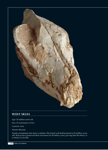 Fossils of mammals also deny evolution. The fossil wolf skull pictured is 20 million years