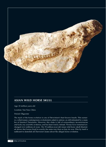 changed over millions of years. The 33-million-year-old Asian wild horse skull illustrat-