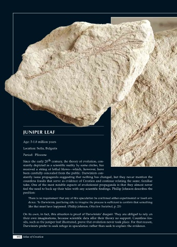 sils, such as the juniper leaf illustrated, prove that evolution never took place. For that reason,