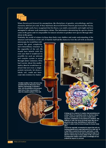 structure and functions of the cell. If Darwin had had the chance to view the cell with an electron