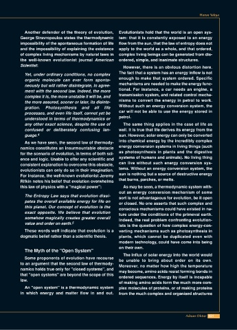 Another defender of the theory of evolution, Evolutionists hold that the world is an open sys-