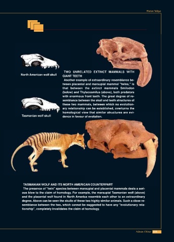 ous blow to the claim of homology. For example, the marsupial Tasmanian wolf (above)