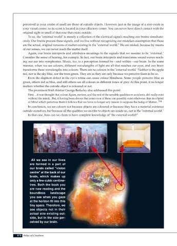 manner, when we see colours, different wavelengths of light are all that reaches our eyes, and our brain