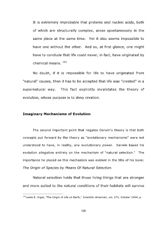 133 Leslie E. Orgel, "The Origin of Life on Earth," Scientific American, vol. 271, October 1994, p.