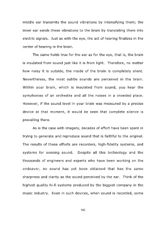 electric signals. Just as with the eye, the act of hearing finalizes in the