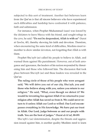 Shu‘ayb’s (as) determination, despite the threats and aggres-