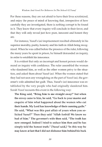 erner’s wife admitted her guilt. Thus, Yusuf’s (as) innocence was es-