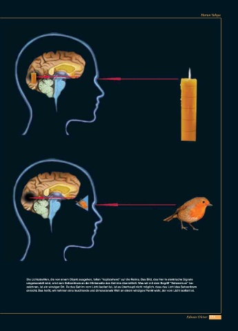 umgewandelt wird, wird zum Sehzentrum an der Hinterseite des Gehirns übermittelt. Was wir mit dem Begriff "Sehzentrum" be-