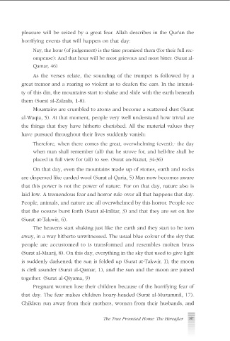 pleasure will be seized by a great fear. Allah describes in the Qur'an the