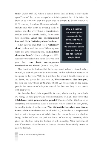 vein." (Surah Qaf: 16) When a person thinks that his body is only made