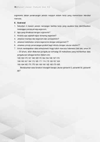 7. Untuk mendapatkan data antropometri tinggi tubuh manusia Indonesia (laki-laki, umur 20