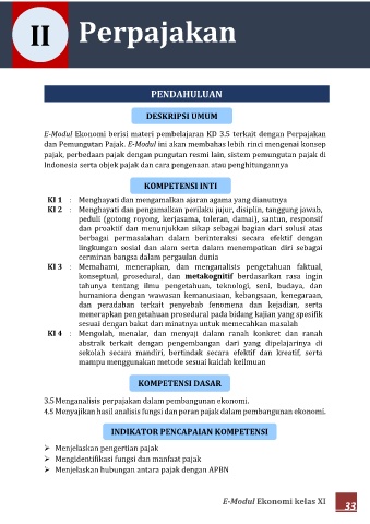 E-Modul Ekonomi berisi materi pembelajaran KD 3.5 terkait dengan Perpajakan
