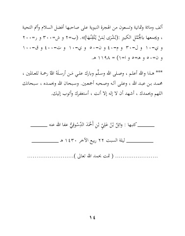 ألم ومائة وثمانية ونسعون من الهجر النبوية على اابها أَضل السلام وأتم الل ية