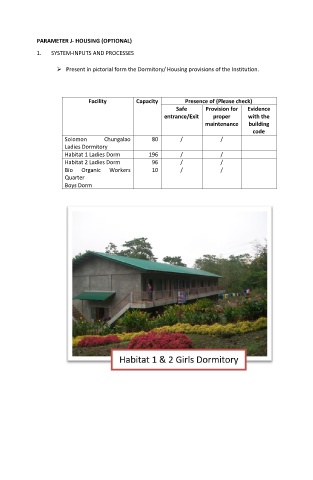 Present in pictorial form the Dormitory/ Housing provisions of the Institution.