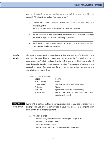 PRACTICE 2 Work with a partner. Add as many specific details as you can to these vague