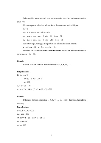 dan seterusnya, sehingga didapat barisan aritmetika dalam bentuk: