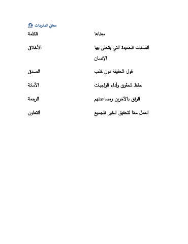 ️ يتادرفملا ي ناعم ةملكلا اهانعم قلاخمأا اهب ىلحتي يتلا ةديمحلا تافصلا ناسنلإا قدصلا بذك نود ةقيقحلا لوق ةناممأا تابجاولا ءادأو قوقحلا ظفح ةمحرلا مهتدعاسمو نيرخلآاب قفرلا نواعتلا عيمجلل ريخلا قيقحتل اعم لمعلا ً