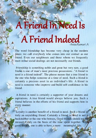 need is a friend indeed". The phrase means that a true friend is