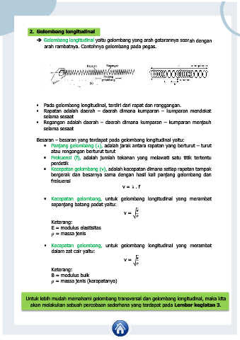 ▪ Pada gelombang longitudinal, terdiri dari rapat dan renggangan.