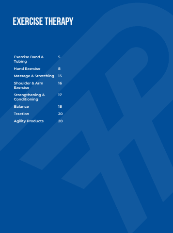 Exercise TherapyExercise Band & Tubing5Hand Exercise 8Massage & Stretching 13Shoulder & Arm Exercise16Strengthening & Conditioning17Balance 18Traction 20Agility Products 20