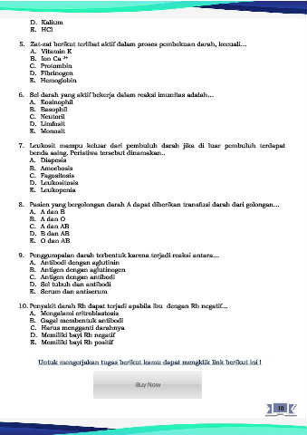 6. Sel darah yang aktif bekerja dalam reaksi imunitas adalah…