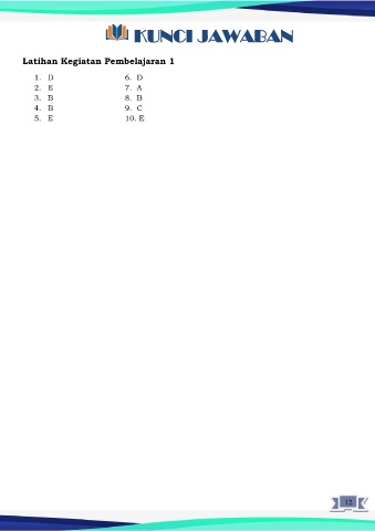 KUNCI JAWABAN Latihan Kegiatan Pembelajaran 1 1. D 6. D 2. E 7. A 3. B 8. B 4. B 9. C 5. E 10. E 12