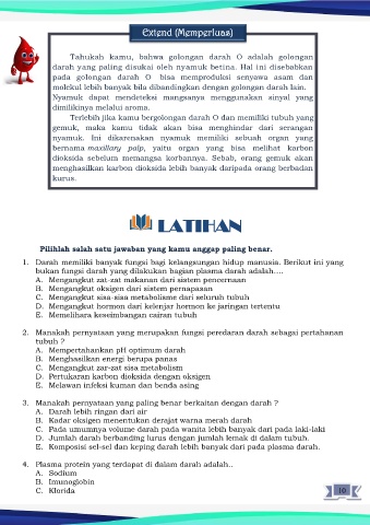 1. Darah memiliki banyak fungsi bagi kelangsungan hidup manusia. Berikut ini yang