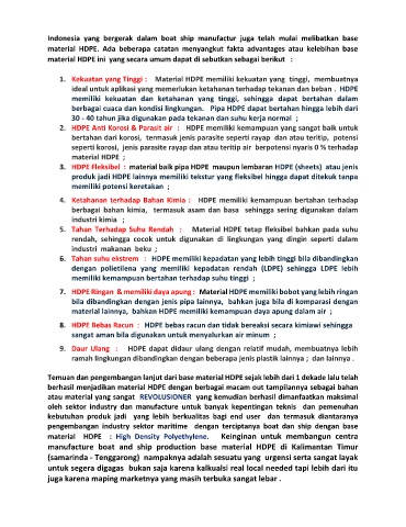 7. HDPE Ringan & memiliki daya apung : Material HDPE memiliki bobot yang lebih ringan