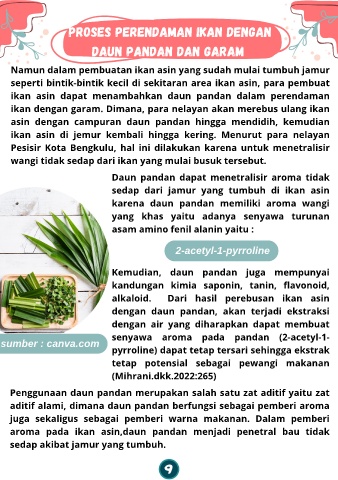 aroma pada ikan asin,daun pandan menjadi penetral bau tidak