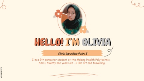 HELLO! I’M OLIVIA Olivia Ispudias Putri S I'm a 5th semester student at the Malang Health Polytechnic. And I’ twenty one years old . I like art and travelling. SLIDESMANIA.COM