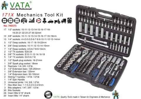2 Sliding T handles: 1/4"dr. 1/2"dr.